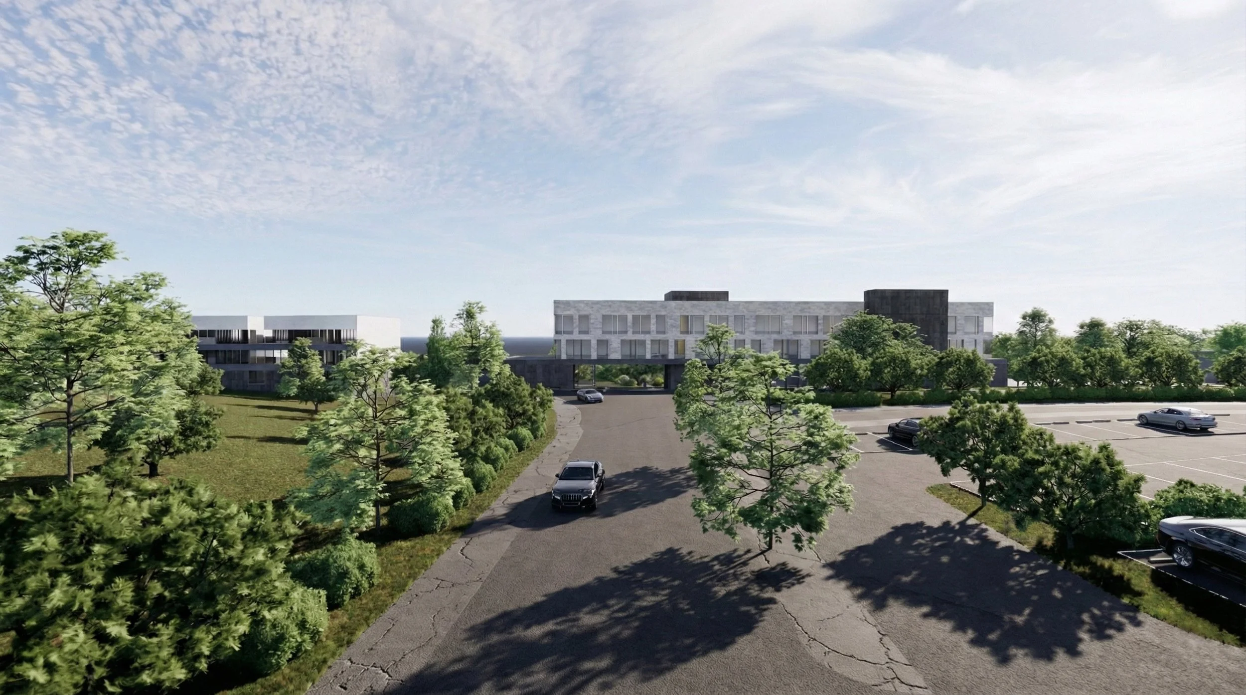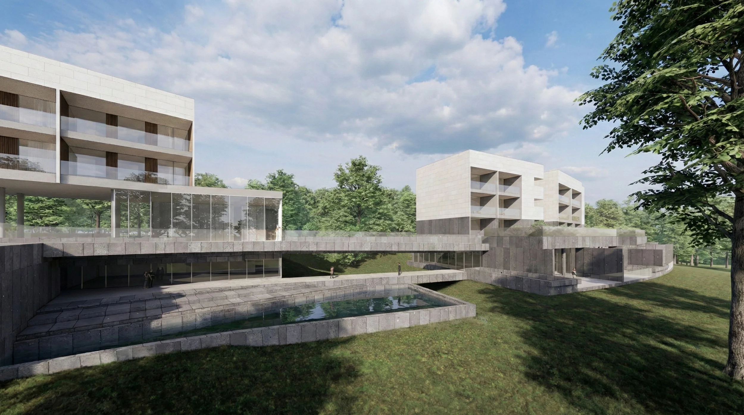 대지는 보전녹지와 자연녹지, 특화경관지구에 속한 약 5,623㎡ 규모로, 건물은 절벽선을 따라 낮고 길게 배치되었다. 호텔동과 풀빌라동은 분절된 매스로 구성되지만, 하나의 수평적 흐름 안에서 읽히도록 계획되었다. 매스는 과장된 조형을 드러내기보다 해안선과 평행한 선형을 강조하며, 풍경 속에 배경처럼 놓인다. 지형의 가중평균 지표면을 면밀히 검토하고 건물 레벨을 조정함으로써 성토를 최소화하고 자연 지반에 순응하는 단면을 형성하였다. 건축은 땅을 새로 만드는 대신, 기존의 지형을 읽고 그 위에 조심스럽게 얹힌다.